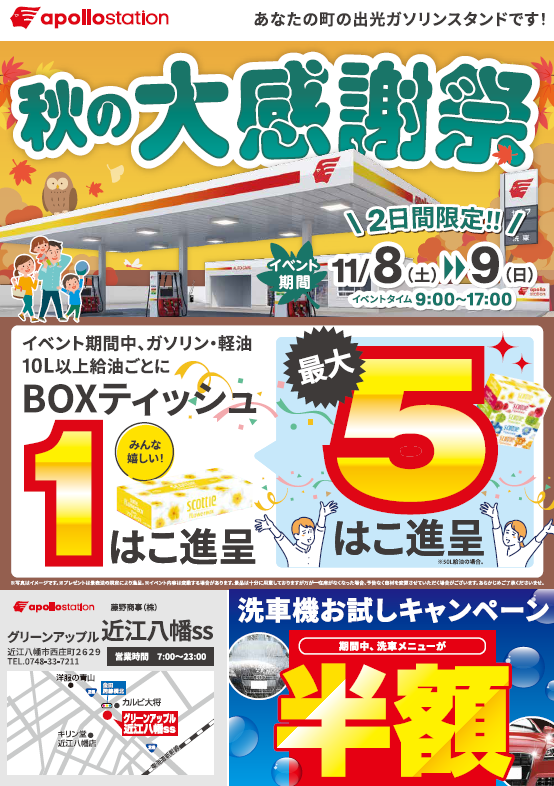 11月8日・9日はグリーンアップル近江八幡SSにお越しください!